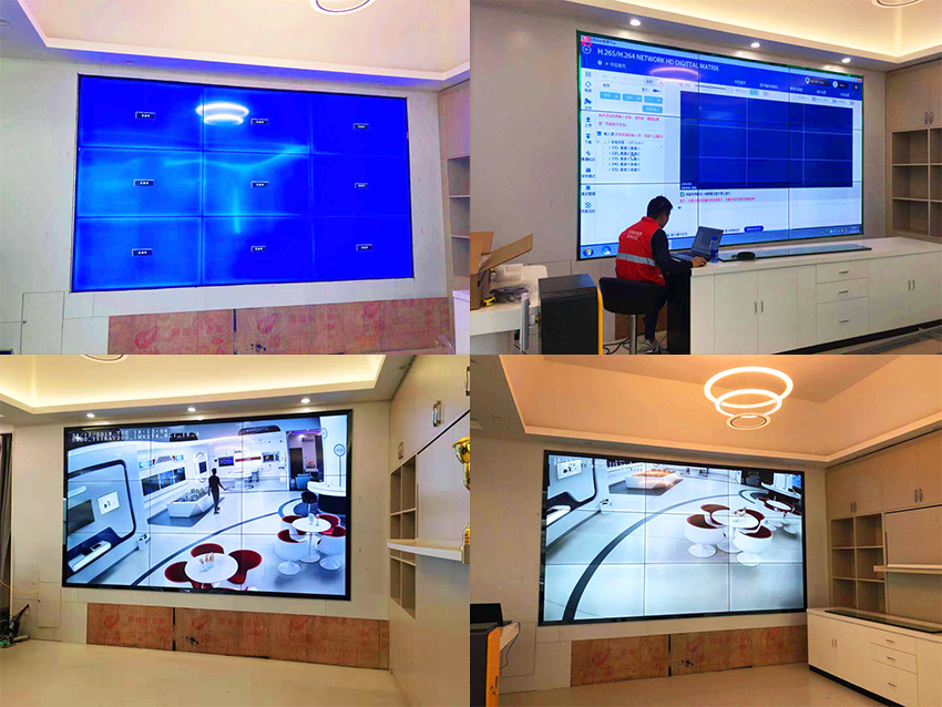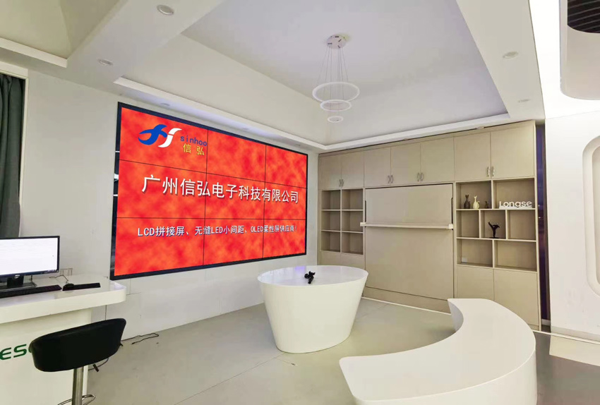 該企業之前已經采用信弘55寸(XHL2ME),3.5mm拼縫液晶拼接屏3×4的拼接方式,信弘55寸(XHL2ME)液晶拼接屏,3.5mm拼縫 2×2的拼接方式,
